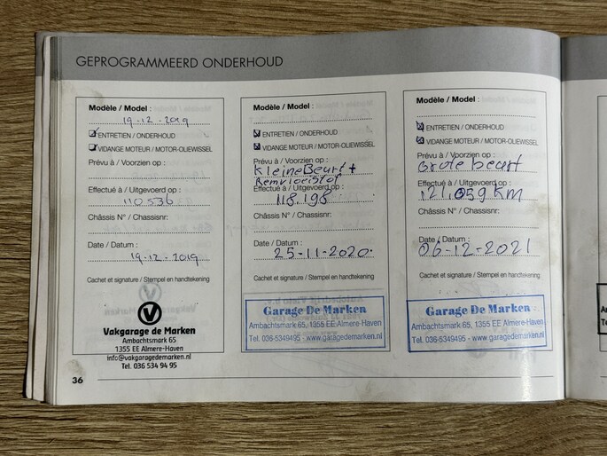 Onderhoudsboekjes: Aanwezig