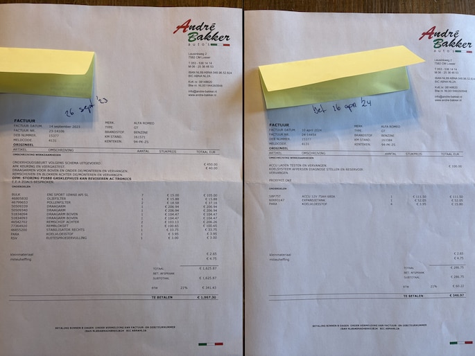 Onderhoudsboekjes: Aanwezig