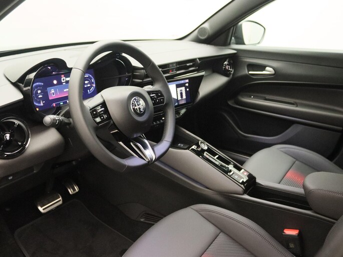 - "Spiga" Stoffen/ecoleder bekleding met rode accenten - 6-voudig elektrisch verstelbare bestuurdersstoel met massagefunctie, 6-voudig handmatig verstelbare passagiersstoel, verwarmbare voorstoelen (60D)