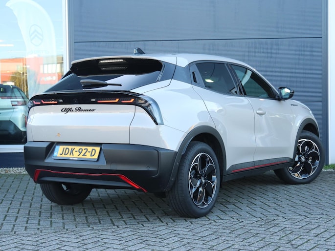 Hij levert uitstekende prestaties en doet dat met zorg voor het milieu. Maar tegelijk is de Alfa Romeo Junior ook gewoon een auto die u volop ruimte en comfort biedt. Eindelijk elektrisch rijden? Deze auto is voorzien van een elektromotor. Dus stil, schoon én snel! Deze Alfa Romeo Junior legt bestuurder én bijrijder compleet in de watten. De verwarmbare voorstoelen zijn voorzien van massagefunctie. De bagageruimte is toegankelijk via een comfortverhogende elektrische achterklep. Verblinding van tegenliggers is er niet meer bij, dankzij de koplampen met matrix LED-verlichting. En toch de kwaliteit van daglicht in het donker! Bij de rijke uitrusting horen ook 18 inch lichtmetalen velgen, extra getint glas, in delen neerklapbare achterbank en LED-achterlichten.