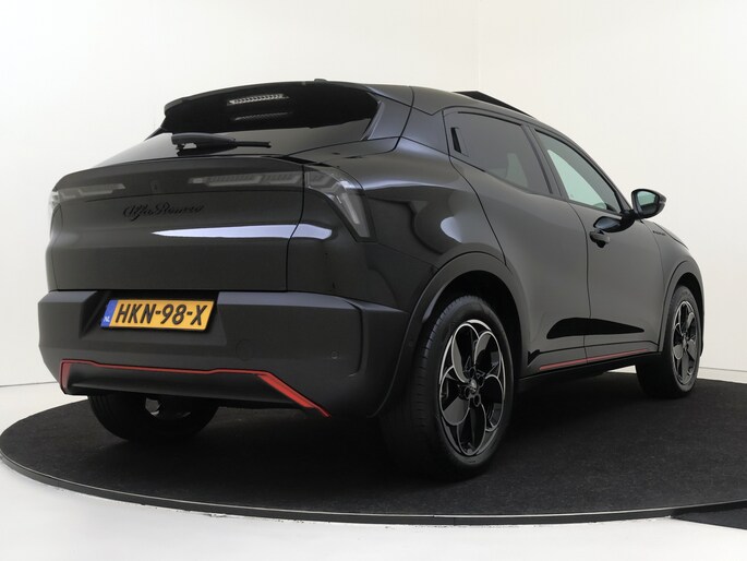Schoon rijden hoeft niet saai te zijn. Ervaar het plezier van elektrisch rijden met de Alfa Romeo Junior. Het aantal kilometers dat je op een acculading kunt rijden, is ruimschoots genoeg voor de gangbare dagelijkse ritten, en het opladen kan in de meeste gevallen 's nachts gebeuren. De krachtige motor geeft deze Alfa Romeo uitstekende prestaties. Een weldaad voor uw rug en die van uw bijrijder: deze Alfa Romeo Junior heeft verwarmbare voorstoelen met massagefunctie. De sportstoelen houden jou en jouw bijrijder goed op z'n plek tijdens het accelereren en bij het nemen van scherpe bochten. Een handige voorziening op deze auto is de elektrische achterklep die je op afstand kunt openen. Met het grote glazen panoramadak voelt het alsof u in een cabrio zit. De matrix LED-verlichting is het allernieuwste op het gebied van autoverlichting. Altijd maximaal licht op de weg, zonder tegenliggers te hinderen! Bij de uitrusting van deze Alfa Romeo horen onder meer 18 inch lichtmetalen velgen, halflederen bekleding, donker getint glas achter, in delen neerklapbare achterbank en LED-achterlichten.