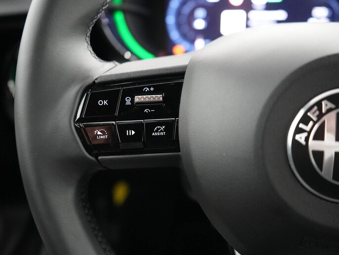 Iedere rit in een elektrische auto is een weldaad: u rijdt ontspannen en in alle rust, er is volop vermogen en u komt verkwikt op uw bestemming aan. De actieradius van deze auto is ruim voldoende voor de meeste dagelijkse ritten en de laadtijd zal u nog verbazen. Op de teller van deze auto staat slechts 6587 kilometer. De krachtige motor geeft deze Alfa Romeo uitstekende prestaties. Ga samen met uw bijrijder lekker zitten in de verwarmbare voorstoelen. De elektrisch bedienbare achterklep opent met een druk op de knop. Vergeet halogeen; deze koplampen gebruiken de allernieuwste matrix LED-technologie met maximale lichtopbrengst zonder de tegenligger te hinderen. Natuurlijk behoren 18 inch lichtmetalen velgen, halflederen bekleding, donker getint glas achter, in delen neerklapbare achterbank en LED-achterlichten ook tot de uitrusting van deze complete auto. Slim, efficiënt, veilig en goed geïnformeerd rijden? Het digitale dashboard vertelt u alles wat u wilt weten. Nooit meer problemen bij achteruitrijden of inparkeren. De achteruitrijcamera houdt alles in de gaten! Met adaptive cruise control houdt deze auto automatisch afstand tot uw voorligger. Filerijden? Doodvermoeiend. Daarom helpt de file assistent zo nodig een handje. Door automatisch afstand te houden, en te stoppen als uw voorligger stilstaat. Als u 'm vraagt 'hoe gaat het?' geeft deze auto zelf het antwoord. Via de app op uw smartphone. U checkt de meters waar u maar wilt, of activeert diverse functies alvast. De Alfa Romeo is standaard voorzien van: navigatiesysteem, automatische airconditioning, draadloos opladen, regensensor, keyless entry en automatisch dimmende binnenspiegel. U geniet nog meer van het rijden met uw Alfa Romeo omdat u wordt beschermd door intelligente veiligheidssystemen. Bij de veiligheidssystemen van deze auto hoort ook de verkeersbord-detectie. Die leest tijdens het rijden als het ware met u mee en attendeert u op de significante verkeersborden langs en boven de weg. Met voorzieningen als dodehoekdetectie, hill hold functie en autonoom remsysteem, bent u altijd veilig onderweg. Elektrisch rijden: kenners weten waarom. Bel ons voor een afspraak!