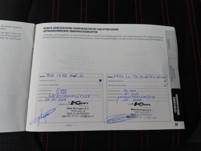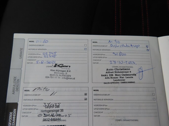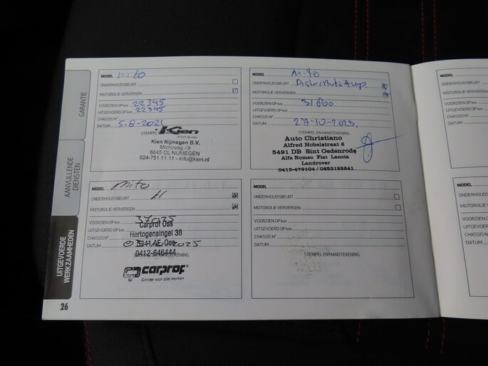 De complete documentatie van alle onderhoudsfacturen zitten bij de auto.
