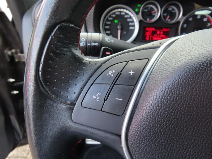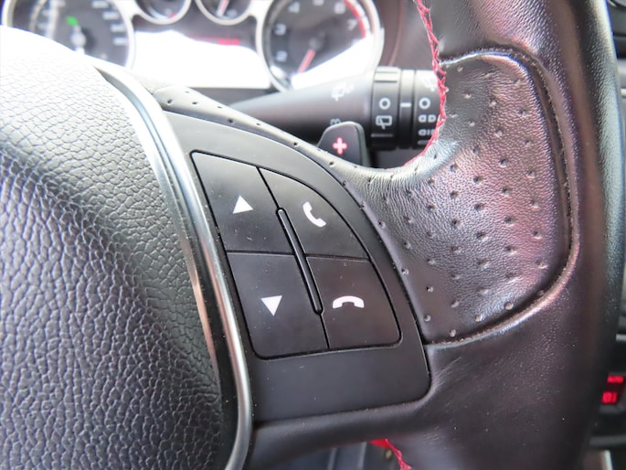 - Sportstuur met zwarte inlegpanelen en lederen bekleding afgewerkt met rode stiksels