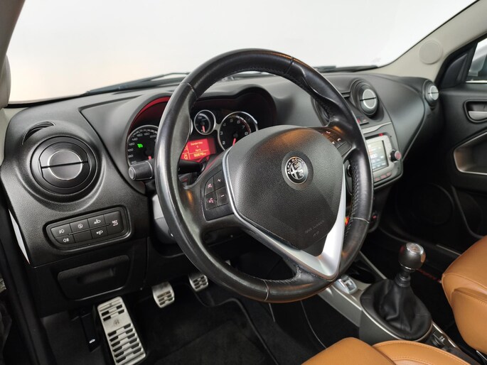 Rijden als nieuw? Dan is deze Alfa Romeo MiTo een fantastische buitenkans. Prille cijfers op de teller, piepjong ogend, verbluffend actueel in extra's en opties... Deze Alfa Romeo MiTo heeft het allemaal! Met zijn benzinemotor en handgeschakelde zesversnellingsbak is dit een prima auto voor nog vele kilometers. Houdt u van een stijlvolle uitvoering? Dan zal het lederen interieur u zeker bevallen. Kou en regen maken geen indruk. Binnen zit u comfortabel dankzij de stoelverwarming. Bij de zeer complete uitrusting van deze auto behoren ook 18 inch lichtmetalen velgen, dakspoiler, in delen neerklapbare achterbank, LED-achterlichten, verstelbare lendensteunen en variabele stuurbekrachtiging.