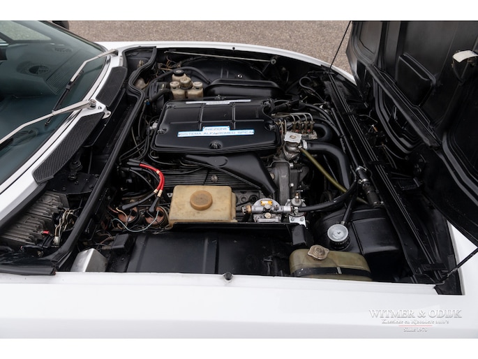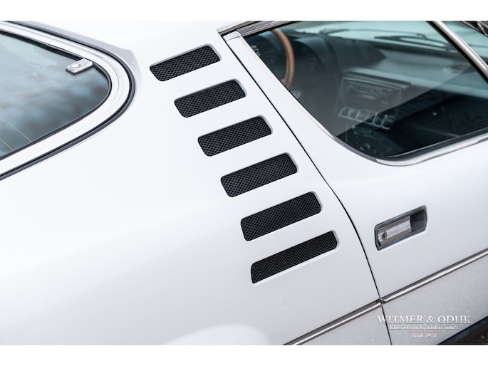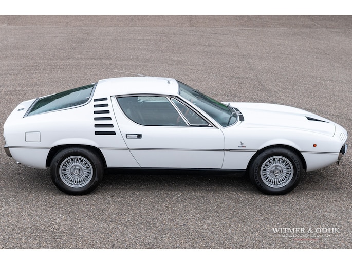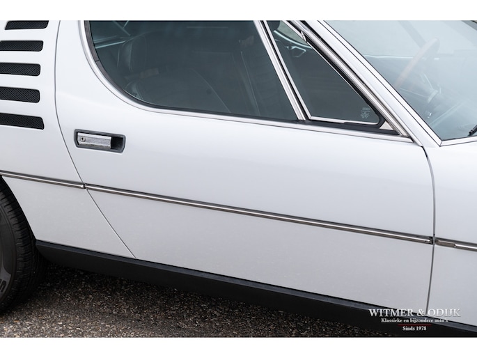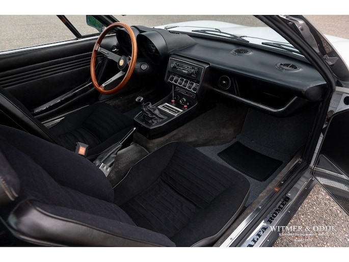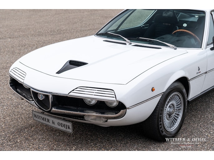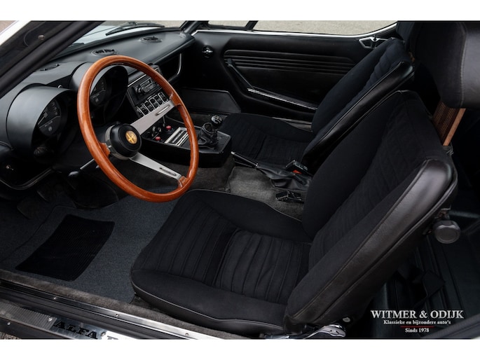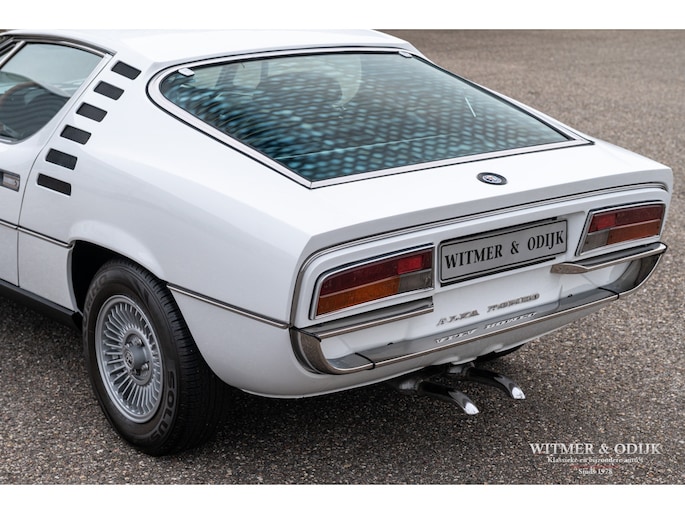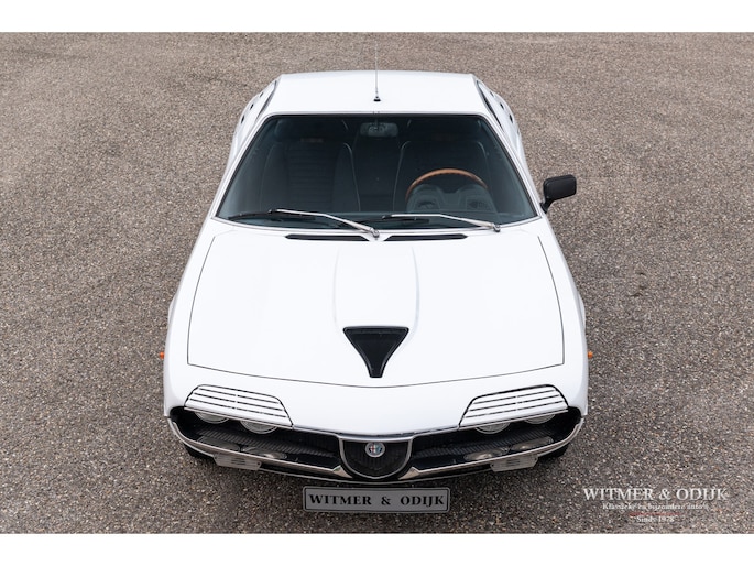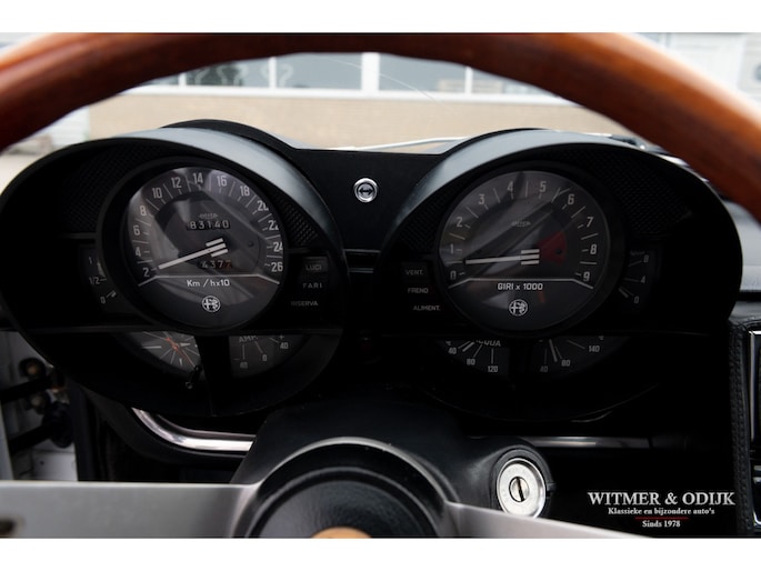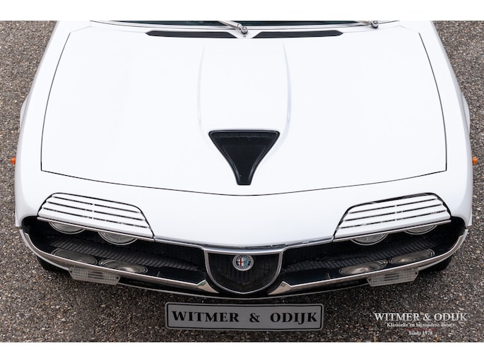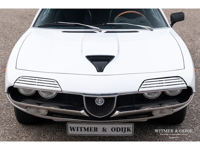 De Alfa Romeo Montreal, het schitterende ontwerp van Marcello Gandini, ook de ontwerper van de legendarische Lamborghini Miura zoals de luchtinlaten achter de deuren bevestigen, werd in 1967 op de Expo 67 in Montreal gepresenteerd. Daar hield het concept de onofficiële naam aan over die het publiek de auto was gaan geven in Canada waarna de fabriek deze uiteindelijk overnam. De Montreal stond in die tijd, net zoals recent de C8, ontwerptechnisch ver boven het gemiddelde 4 cylinder aanbod van Alfa Romeo. Zo was er de V8 die afgeleid was van de motor uit de beroemde 33 Stradale, een 5 bak van het Duitse ZF, een gelimiteerd antislip differentieel, dry-sump smering, het SPICA injectie systeem en last-but-not-least het prachtige design. Meest in het oog springende details; de koplamproosters die wegklappen bij gebruik van het licht, de motorkap met fraai gecamoufleerde welving en de eveneens op de Miura aanwezige luchtroosters. Die overigens in eerste instantie ook echt luchtinlaten hadden moeten worden omdat het ontwerp een middenmotor zou krijgen. Nu één van de fraaiste stijlelementen van de Montreal. Klik tenslotte ook nog even de foto's van de snelheidsmeter en toerenteller aan en zie dat ook op dit detailniveau de Montreal uniek is. Ze is de laatste jaren één van de sterkst rijzende sterren aan het klassiekerfirmament, om onbegrijpelijke redenen was de waardering er niet altijd waardoor restauraties uit het verleden vaak goedkoop en slecht zijn uitgevoerd. Deze Alfa Romeo Montreal is dermate goed geconserveerd gebleven dat ze alleen om cosmetische redenen slechts eenmaal nieuw gespoten werd. Het spuitwerk verdient een speciale vermelding. Foutloos vakwerk Ze is dermate weinig gebruikt dat de auto verder nog geheel in originele staat is, dat maakt deze Montreal tot een zeer bijzondere en iconische klassieker. Voorzien van elektrische ramen, getint glas, lichtmetalen Campagnolo velgen en claxon met bergstand. De optielijst van Alfa was in die tijd nauwelijks langer. De aanwezige airconditioning verdient een aparte vermelding, naar verluid zijn daar minder dan 500 exemplaren mee uitgerust. Speciaal voor de Montreal liet Bertone in Grusliaco een assemblage- en lakfabriek bouwen waar de carrosserieën 'kaal' naar toe werden gebracht. Aldaar werden ze ontvet, van een zinklaag en een onderlaag voorzien alvorens de uiteindelijke lakkleur op een elektrisch geladen carrosserie werd opgebracht voor een optimale hechting. Dankzij deze werkwijze zijn er nog originele geconserveerde carrosserie te vinden die alleen om cosmetische redenen nieuw gelakt moeten worden of reeds nieuw gespoten zijn. Dit exemplaar is in fraai en zeldzaam Bianco uitgevoerd waarin het ontwerp bijzonder fraai tot zijn recht komt. Vorig jaar vakkundig nieuw gespoten. Mooi stofvrij en glad. De auto is gaaf en er is nimmer aan gelast. Correcte passingen, bumpers en trim in zeer goede onbeschadigde staat. Origineel en onbeschadigd glaswerk. Koplampvensters goed werkend. Zie de detailfoto's van onderzijde en div. kritische delen, alles mooi droog en origineel. Dit is een van de belangrijkste criteria bij het waardeoordeel van een Montreal. Het interieur van deze Montreal is een ware tijdmachine, geheel origineel zoals het in 1972 werd uitgeleverd. Geen noemenswaardige gebruikssporen of beschadigingen. Ook de bekleding van stof op de stoelen vertaald het geringe gebruik van deze auto. Origineel Hellebore stuur. Het dashboard heeft geen kraken van hitteontwikkeling. Vloerbekleding onbeschadigd en schoon. De vloermatten zijn wél vernieuwd. Alle schakelaars en hendels schoon en correct werkend. De motorruimte is volledig origineel en schoon. De fraaie V8 heeft nog de originele fabriekslak op de klepdeksels, geen ingevreten olieresten. Het geheel biedt een prachtige blik op hoe de auto in 1972 de fabriek verliet. Er is overigens wel zichtbaar onderhoud uitgevoerd. Dit alles met correcte materialen. Aan de binnenzijde van de motorkap nog de sticker met olie-voorschriften van de fabriek. De kofferruimte heeft nog de originele bekleding en is mooi schoon en onbeschadigd. Originele krik en reservewiel aanwezig. De 14 inch lichtmetalen Campagnolo velgen zijn vrij van parkeerschade en remstof. Zeer goede banden hier omheen. Een harde, ongerestaureerde en goed geconserveerde Montreal vinden is de wens van de collectioneur die met verstand verzameld. Immers de mate van originaliteit is een steeds groter wordende factor bij de waardering voor klassiekers als deze. Dun en stofvrij lakwerk, zichtbare flensranden en puntlassen zijn een must. Dit recent uit Italië geïmporteerde exemplaar is een voorbeeld van hoe mooi en goed een Alfa carrosserie uit die tijd kan zijn. Dankzij het milde klimaat en garagestalling is deze Montreal extreem goed geconserveerd. Zelden zag ik zo'n mooie carrosserie. De vorige twee Italiaanse eigenaren zagen vanaf net moment van aanschaf al in dat een Montreal een hoog gewaardeerde waardevolle klassieker zou worden en gingen er dus ook zodanig mee om. Het strakke roestvrije plaatwerk, originele interieur en keurig verzorgde motorruimte bewijzen de uitzonderlijke conditie van deze Montreal. Aangekomen in Nederland bleek de auto als gevolg van het verblijf in een Italiaanse collectie toe aan groot onderhoud. Specialist Sam van Lingen (wereldberoemd in Alfa land) verrichtte veel werk, o.a. de motor werd volledig gedemonteerd en gereviseerd, een specialist in Duitsland reviseerde het Spica injectie systeem en bijv. de uitlaat werd vernieuwd. Resultaat, een zeer goed rijdende Montreal met een min of meer 'nieuwe' motor. Zo steekt de auto uit boven het gemiddelde aanbod... Zie onze website voor meer dan 100 foto's www.witmerodijk.nl of gebruik de volgende link; https://witmerodijk.nl/te-koop/alf-romeo-montreal-1972/2365