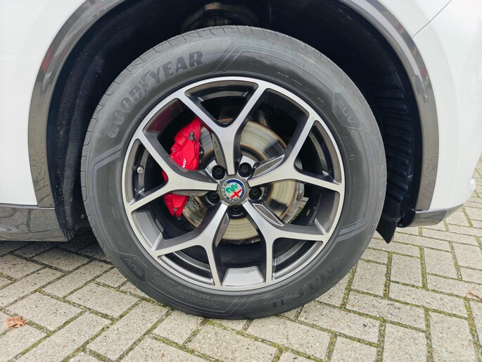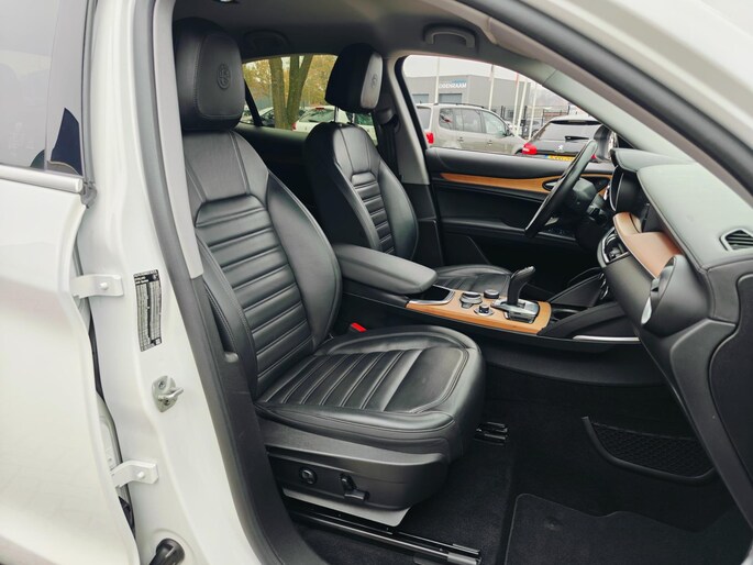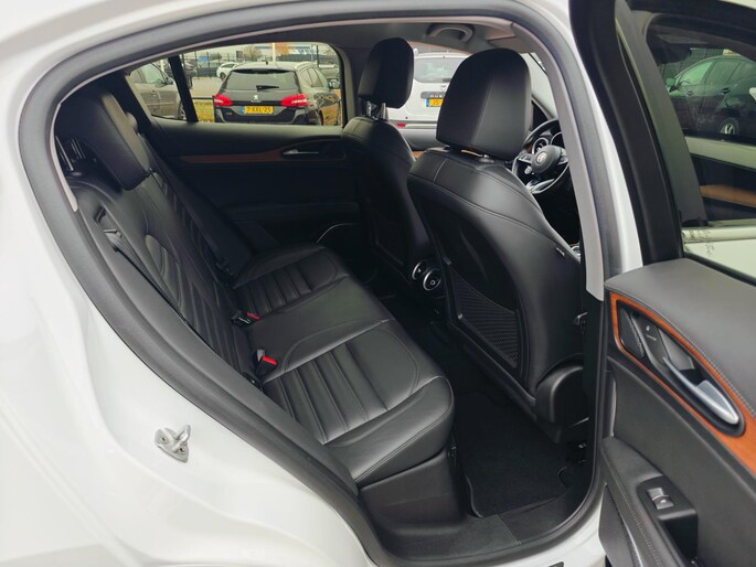 Hebben we u nieuwsgierig gemaakt? Bel of mail ons nu voor een proefrit.Geniet van het rijplezier dat alleen een Italiaanse auto u kan bieden. Een krachtige motor geeft deze auto zijn sportieve prestaties. Onder alle weersomstandigheden ligt deze auto als een blok op de weg dankzij de vierwielaandrijving. Het interieur is luxe uitgevoerd met leren bekleding. Op koude en donkere dagen zijn de verwarmbare voorstoelen een uitkomst. De bagageruimte is toegankelijk via een comfortverhogende elektrische achterklep. Al is het nog zo fris, koude handen zijn verleden tijd door het verwarmd stuurwiel. In deze Alfa Romeo profiteert u onder andere ook van: 19 inch lichtmetalen velgen, warmtewerend glas, LED-dagrijverlichting, trailer assistent, elektrisch inklapbare buitenspiegels en in delen neerklapbare achterbank.
