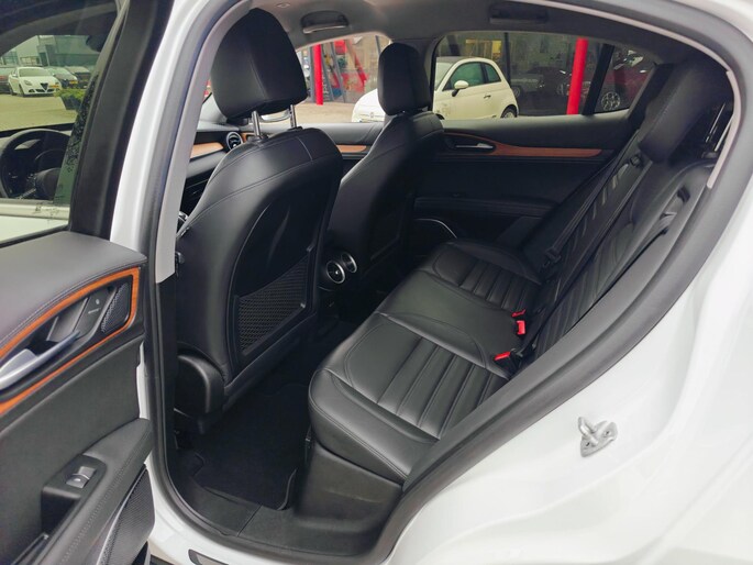 Adaptive cruise control houdt de ingestelde snelheid vast en houdt automatisch afstand tot uw voorligger. Het audio-installatiesysteem met dab-radio biedt glasheldere geluidskwaliteit, u bedient dit veilig via het stuurwiel. De draadloze oplaadmogelijkheid voor telefoons voldoet aan de universele Qi-standaard. Elke geschikte smartphone is onderweg zonder snoeren en stekkers op te laden. De achteropkomend verkeer waarschuwing geeft een signaal als degene achter u te dicht op u zit. Ook handig en veilig bij het wisselen van rijbaan. Een plekje vinden in de binnenstad is één, inparkeren is twee. Voor dat laatste heeft deze Alfa Romeo STELVIO prima parkeersensoren die u een handje helpen. De Alfa Romeo is standaard voorzien van: airconditioning, automatisch dimmende buitenspiegels, isofix-aansluiting, centrale deurvergrendeling met afstandsbediening, bestuurders-informatie-systeem en lederen versnellingspook.