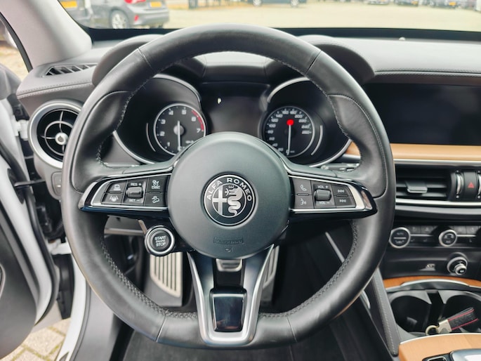 Met adaptive cruise control houdt deze auto automatisch afstand tot uw voorligger. Het audio-installatiesysteem met dab-radio biedt glasheldere geluidskwaliteit, u bedient dit veilig via het stuurwiel. De draadloze oplaadmogelijkheid voor telefoons voldoet aan de universele Qi-standaard. Elke geschikte smartphone is onderweg zonder snoeren en stekkers op te laden. De kans op een kop-staart botsing wordt sterk gereduceerd door het systeem van achteropkomend verkeer waarschuwing. U kunt bij het inparkeren natuurlijk niet aan alle kanten ogen hebben. Daarom is deze Alfa Romeo Stelvio voorzien van parkeersensoren! Met airconditioning, automatisch dimmende buitenspiegels, isofix-aansluiting, centrale deurvergrendeling met afstandsbediening, bestuurders-informatie-systeem en lederen versnellingspook is deze Alfa Romeo helemaal compleet.