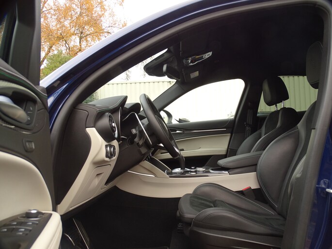 Wanneer je een Stelvio Q zelf besteld kun je hem kiezen zoals je hem zelf het liefste ziet. Dhr Krebs uit Oostenrijk gooide het eens over een andere boeg, hij koos ervoor om niet zoals de massa te zijn en alles behalve de lak zwart te bestellen, maar heeft juist voor lichtgrijs gekozen. Wat ons een betreft een diepe buiging, want dat is altijd even lastig kiezen vanaf een plaatje. Maar de complimenten zijn voor Dhr. Krebs want nog nooit hebben wij zo'n prachtige en sjieke interieursamenstelling gezien in een Stelvio Q. En wat heeft hij de auto super netjes gehouden, alles lijkt nog als nieuw van binnen. Geen smetje te vinden, de showroomgeur zit er nog in, het is alsof je in een splinternieuwe Q stapt. De 1e de beste.... dit geld statistisch gezien voor bijna alle liefhebbersauto's die wij kopen van de 1e eigenaar, deze man weet als geen ander wat hij nieuw voor dit klaverblaadje heeft neergeteld... dat is dan ook de enige verklaring waarom zowel de optische staat als de technische staat zo goed is. Onderscheidend in staat en uitstraling, dat is een feit! Vlak voor zijn pensioengerechtigde leeftijd heeft hij deze parel aangekocht is onze aanname, genoeg tijd dus om hem Alfawaardig te kunnen onderhouden en verzorgen.