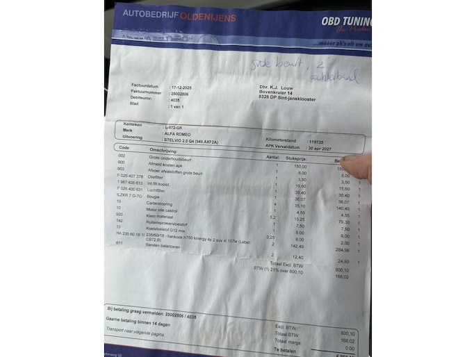 Zowel optisch als technisch verkeert de Alfa in goede conditie. De auto is nieuw in Duitsland geleverd en in begin 2021 naar Nederland verhuisd. De auto heeft in Nederland slechts één particuliere eigenaar gehad welke de auto zelf uit Duitsland heeft geïmporteerd. De volledige historie (vanuit zowel Duitsland als Nederland) is bij de auto aanwezig wat de kilometerstand aantoonbaar maakt. Bij 120.000km is de auto nog voorzien van een grote onderhoudsbeurt.