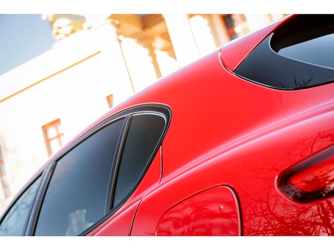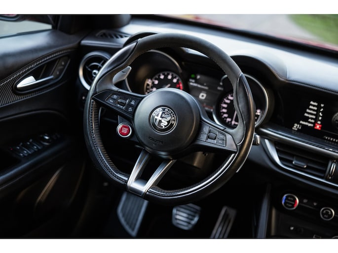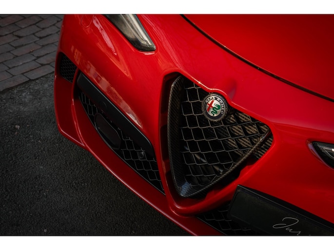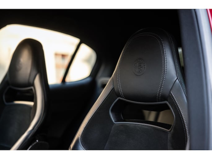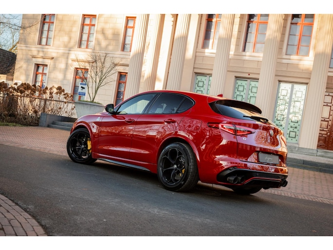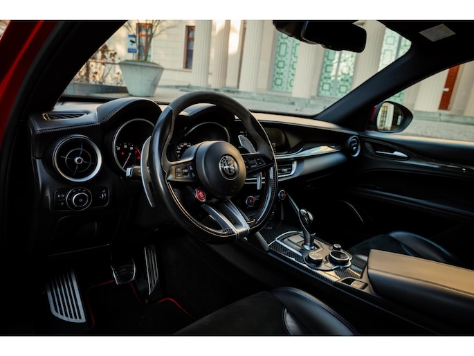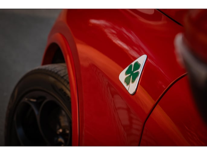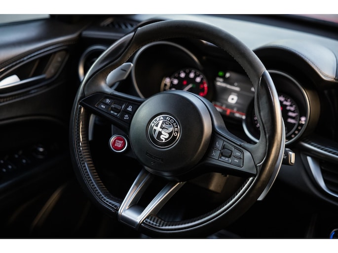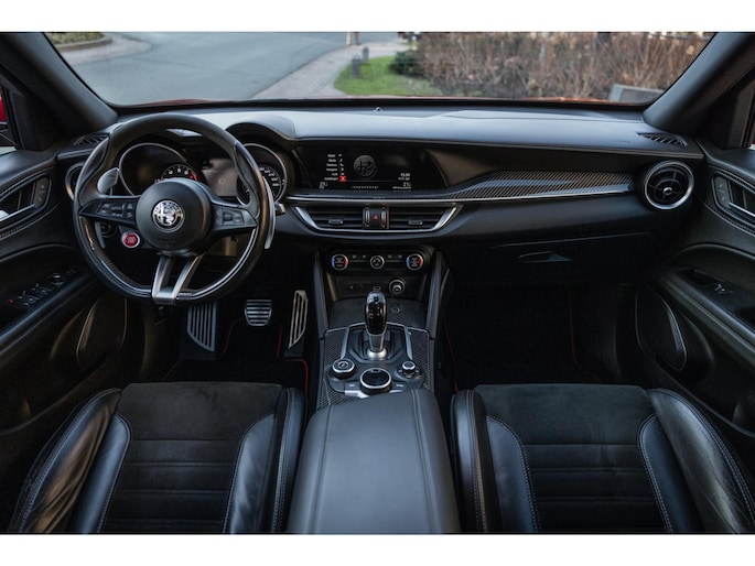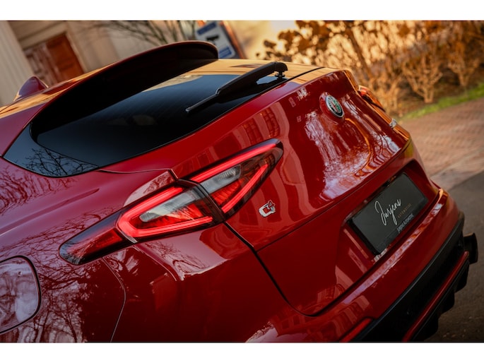 De Looks! De ronde vormen, het agressieve front, met de breede lichtunits en de zo kenmerkende grille. En dan die fantastische Quadrifoglio velgen met achter 285/40 Pirelli schoeisel, de vier indrukwekkende uitlaten, het is allemaal lust voor het oog.