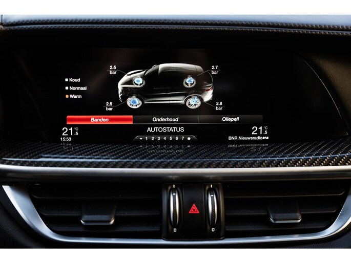De Stelvio is rijkelijk voorzien van extra opties zoals het eerder genoemde keramisch remsysteem. Verder alle mogelijke rijassistenten waaronder adaptieve cruise control en Lane departure warning. Het multimediasysteem voorziet in navigatie, uitgebreide menu’s, telefonie, bluetooth audio, Apple CarPlay en Android Auto. Uiteraard ontbreekt het camerasysteem ook niet.