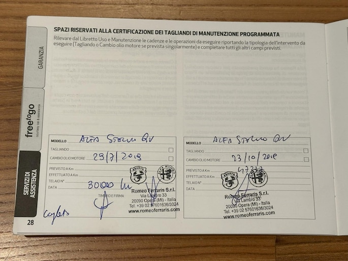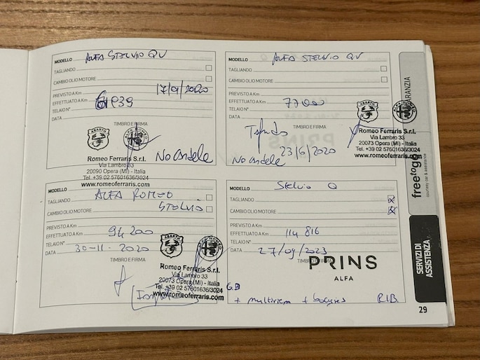 De Stelvio werd origineel in Italië geleverd aan de eerste eigenaar. De originele aankoopfactuur is aanwezig. De auto werd door deze eigenaar steeds door deze zelfde dealer onderhouden. In 2023 kwam de Stelvio naar Nederland. Hier werd de auto zakelijk gereden door de tweede eigenaar. Deze eigenaar liet de auto onderhouden door Alfa Romeo dealer Prins uit Nunspeet. De historie is volledige sluitend. Met recht een eerlijk en zuiver exemplaar. De staat is netjes en de Stelvio is duidelijk met zorg en liefde behandeld en bereden. Enig punt van kritiek zou de lichte steenslag op de voorzijde kunnen zijn.