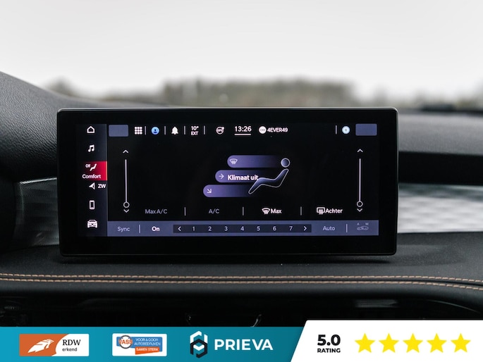 Het interieur ademt Italiaanse klasse. De leder/stof bekleding geeft het geheel een luxe uitstraling, terwijl het comfortniveau hoog ligt. Denk aan verwarmbare voorstoelen voor koude ochtenden en een elektrisch bedienbare achterklep voor extra gemak in het dagelijks gebruik.