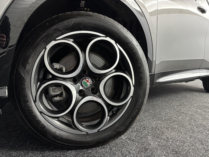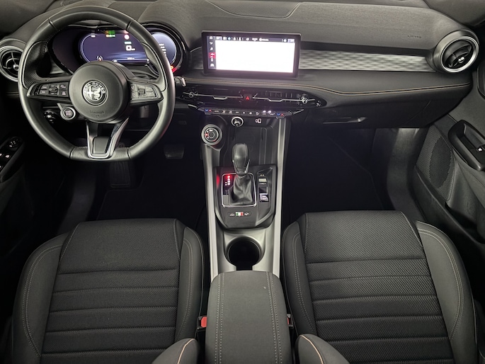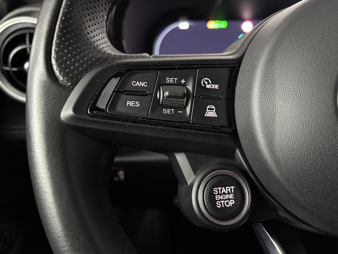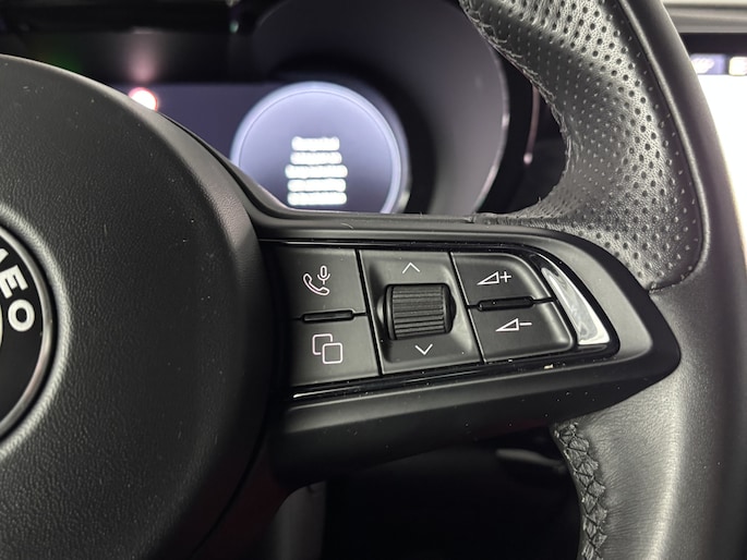 Voor een goed en duidelijk overzicht onderweg is het digitale dashboard uitermate slim ingedeeld. Nekkramp en verdraaide schouders zijn verleden tijd. Door de achteruitrijcamera is iedere meter achter de auto glashelder in beeld. Als je de adaptive cruise control inschakelt, regelt de auto zelf de snelheid en de afstand tot de auto voor je. Je weet altijd hoe de auto eraan toe is dankzij Connected Services. Ook handig voor de garage en de wegenwacht. Even de app uitlezen en klaar! Het audio-installatiesysteem met DAB-ontvangst en het full map navigatiesysteem bedien je veilig met knoppen op het stuurwiel of met gesproken commando's. Deze Alfa Romeo is voorzien van automatische airconditioning, draadloos opladen, lederen sportstuur, keyless entry en automatisch dimmende binnenspiegel.