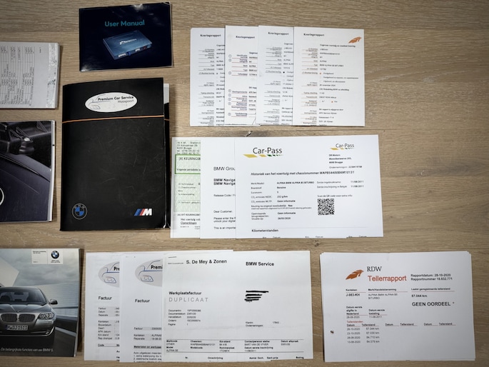 Alle Alpina- en BMW-instructie- en onderhoudsboekjes zijn volledig afgestempeld, met vele facturen, en 2 voertuigsleutels en sleutels voor de ontgrendeling van de velgen zijn aanwezig. Kortom; volledig origineel, compleet van A tot Z in technische en optische topstaat.