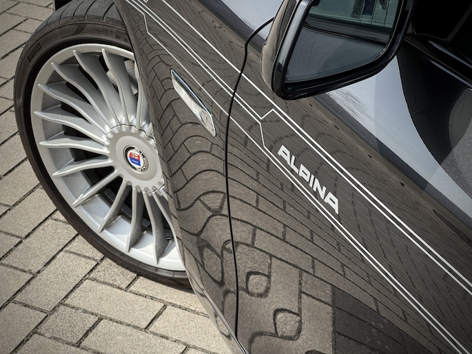 De auto rijdt en schakelt perfect, zoals het hoort bij een echte Alpina. Met 700 Nm koppel en 508 pk is dit een unieke rijervaring waar emotie, luxe, comfort en sportiviteit samenkomen. Waar gewenst rijdt de Alpina heel kalm in zeer lage toeren (8 versnellingen met veel koppel zorgen voor een zeer soepele rijervaring), maar waar gewenst staan 508 pk tot je beschikking en gaat de auto echt af tot maarliefst 307 km/u. Dit zorgt voor een zeer unieke rijbeleving, precies zoals Alpina de auto bedoelt: het beste van twee werelden.