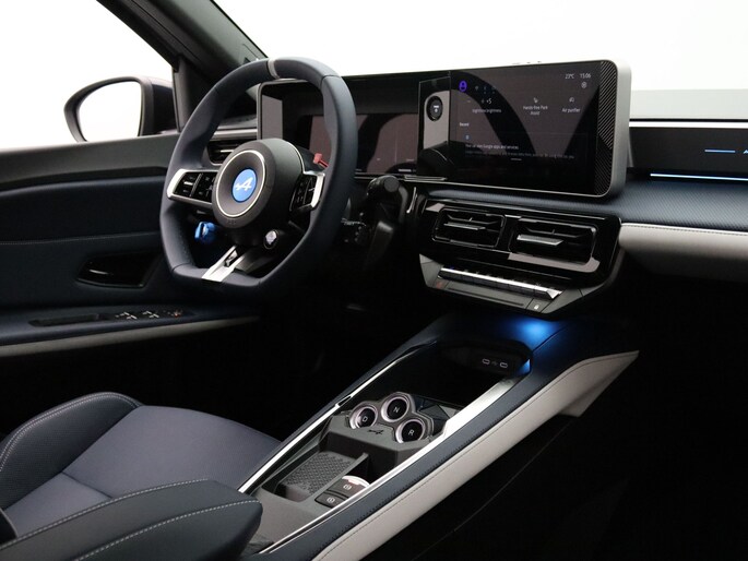 Het eigentijdse interieur wordt natuurlijk helemaal volmaakt met het digitale dashboard. De achteruitrijcamera geeft u duidelijk zicht op de ruimte achter de auto. Adaptive cruise control is een comfortabele en veilige optie. Het systeem reguleert de snelheid en houdt automatisch afstand tot uw voorligger. Bedient u de auto liever met uw stem? Dan is het goed om te weten dat spraakbediening aanwezig is. Navigatie, onderhoudsstatus, vergrendeling, audio... de mogelijkheden van remote services zijn haast oneindig. Ook deze auto laat zich bedienen en analyseren via uw smartphone! Deze Alpine is voorzien van premium audiosysteem, navigatiesysteem, automatische airconditioning, draadloos opladen, sportstuurwiel en keyless entry.