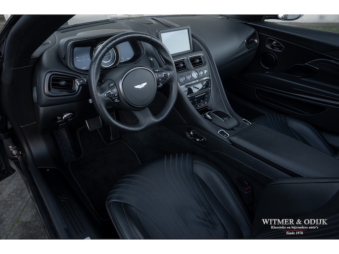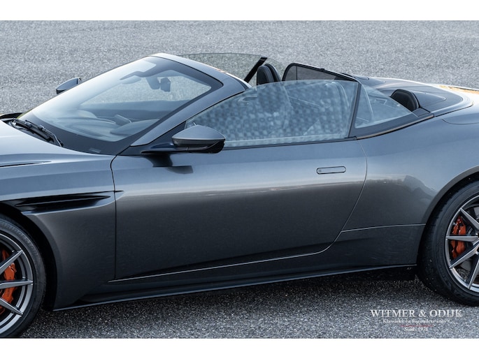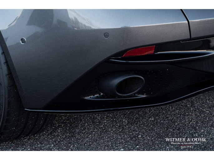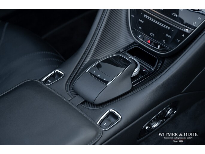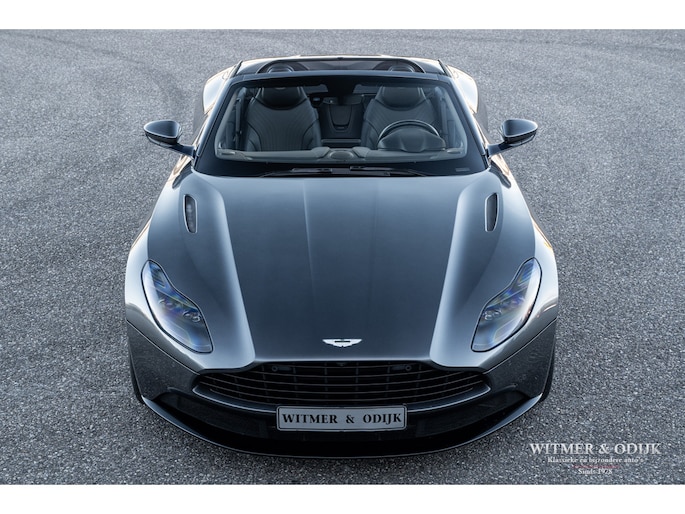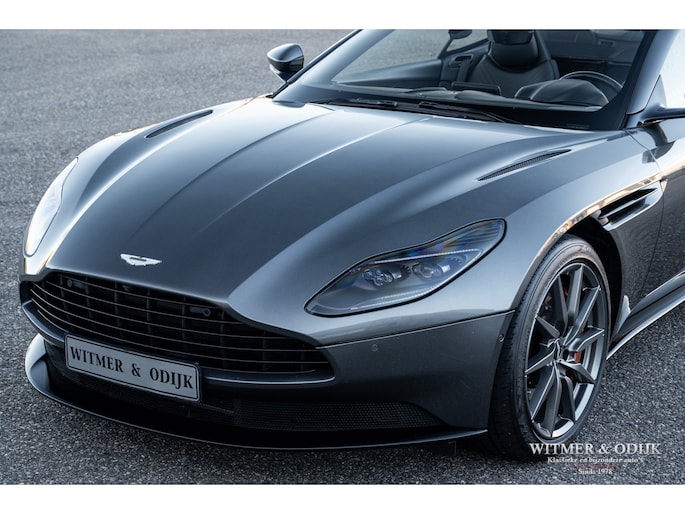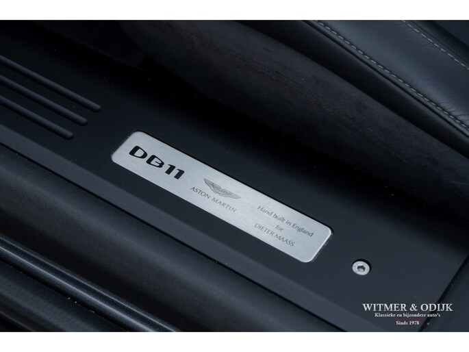 Bejubeld in iedere autotest en internationale autoshow op televisie, de DB11. Het topmodel van Aston Martin werd in 2016 als boegbeeld van het 'Second Century Plan' in de markt gezet, dit plan stond feitelijk synoniem voor de nieuwe samenwerking met Mercedes Benz AMG. Aston Martin zocht voor de ontwikkeling van de DB11 steun bij Daimler Benz, met een jaarlijkse productie van rond de 3.600 auto's ontbeerde het klassieke automerk de fondsen om mee te kunnen in de hoge eisen die de Supercar markt stelt. Ook wilde AM voor eens en voor altijd afrekenen met het kwaliteitsimago wat Britse autofabrikanten bij het grote publiek vaak dwars zit. Mercedes nam al eerder een aandeel in Aston Martin met het plan om dit in de nabije toekomst uit te breiden naar een twintig procent aandeel. Veel belangrijke componenten, inclusief de V8 AMG motor, in de DB11 zijn dan ook afkomstig uit Stuttgart, niet direct zichtbaar wél voelbaar. De versnellingsbak is eveneens 'made in Germany' door het beroemde ZF in Friedrichshafen. Aston Martin kocht een aantal belangrijke chassis engineers weg bij Lotus, met succes want de internationale autopers zegt geen beter sportwagenchassis te kennen als de DB11 blijkt te hebben tijdens intensieve tests. Het stuurgedrag wordt zelfs beter genoemd dan een Ferrari F12 te bieden heeft, kortom een DB11 mag de Supercar liefhebber niet over het hoofd zien. Dat zal in de de praktijk ook niet snel gebeuren, kijk de DB11 bijvoorbeeld eens recht van voren aan, zie dat prachtige brede schelpvormige front en ook die brede heupen achter, tegelijkertijd gecombineerd met de elegantie van de bijzondere daklijn. Vooral het contrasterende klassieke cabriodak van mohair accentueert die schitterende stijlvolle vormgeving. Maar liefst 250 uur hadden de vaklieden van Aston Martin nodig voor de handmatige bouw van een DB11. Deze zo goed als nieuwe DB11 werd ontworpen als een relatief comfortabel te rijden GT maar heeft tot ieders genoegen ook de scherpe randjes én formidabele prestaties van een Supersportwagen. Uiteraard voorzien van alle luxe die men in het Supercar segment mag verwachten. Uitgevoerd in de allerbeste kleurstelling leverbaar, Magnetic Metallic. Geheel origineel, optisch in nieuwstaat en perfect onderhouden. Power, Beauty, Soul.