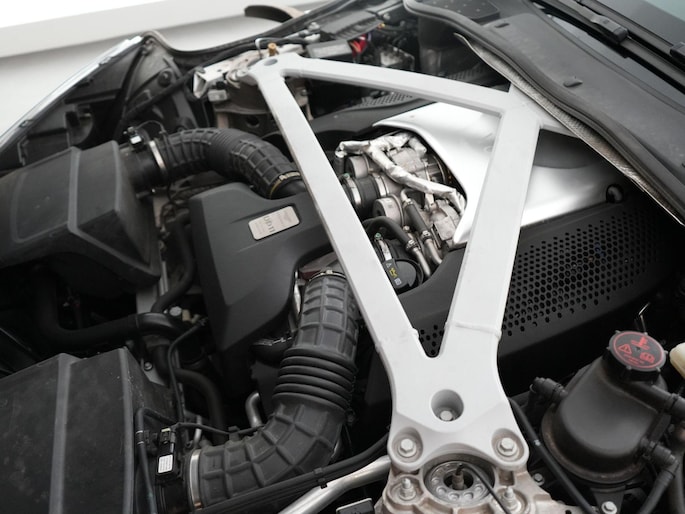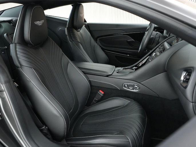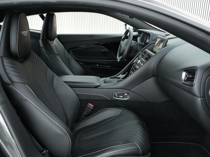 Deze DB11 is uitgevoerd met de 4.0 V8 biturbo, goed voor 510 pk!. Het design is typisch Aston Martin: lang, laag en gespierd, met die herkenbare grille en elegante lijnen die vanuit elke hoek kloppen. De aerodynamische ‘Aeroblade’ achterzijde zorgt niet alleen voor looks, maar ook voor stabiliteit op hoge snelheid.
