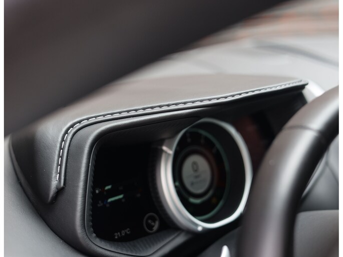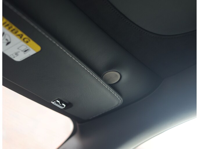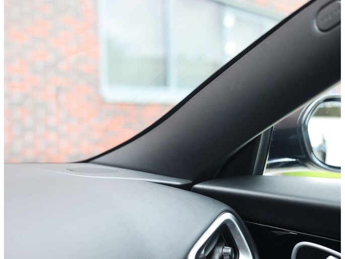 In het interieur vinden we zwart lederen stoelen, volledig naar wens instelbaar en voorzien van verwarming en ventilatie voor optimaal comfort ongeacht het klimaat. Uiteraard mogen de geborduurde logo’s in de hoofdsteunen niet ontbreken en is de rest van het interieur eveneens bekleed met zwart leder, waarbij zelfs de binnenhemel is meegenomen!