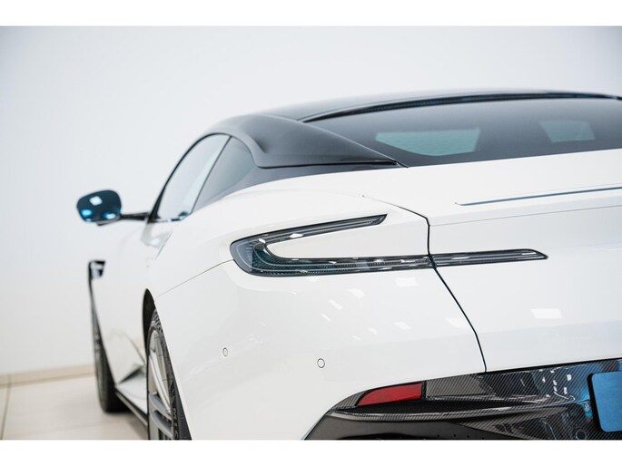 Het exterieur is verder voorzien van het Carbon exterieurpakket onderzijde, het Black Upper Pack (dak, raamomlijsting en spiegels in zwart), een Gloss Black grille, Smoked achterlichten en Privacy glass. De uitstraling wordt compleet gemaakt door de 21” Multi-spoke forged velgen in Satin Platinum en de Aston Martin Wings-badges met groene infill.