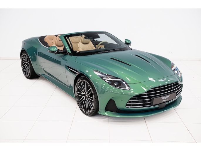 Deze DB12 Volante is uitgevoerd in het prachtige By Q Iridescent Emerald Metallic en combineert compromisloze prestaties met de elegantie van open rijden. Onder de motorkap ligt een 4.0L V8 twin-turbo met 680 pk en 800 Nm, goed voor een sprint van 0–100 km/u in slechts 3,7 seconden en met een topsnelheid van 325 km/u.