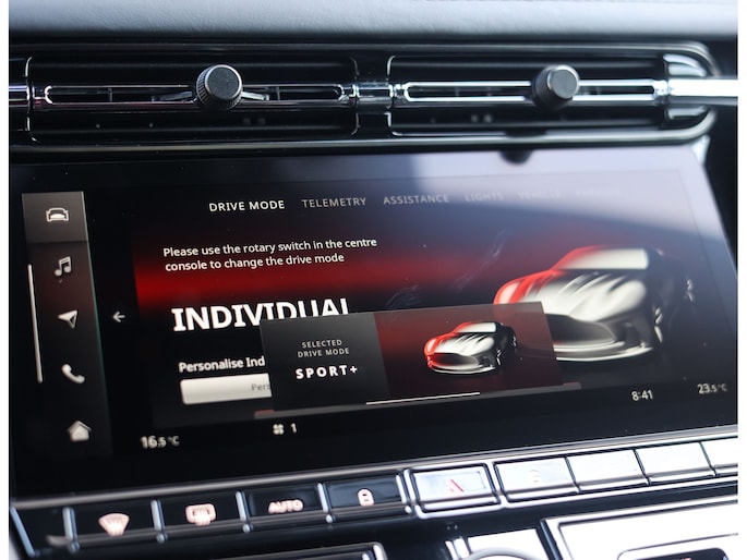Een veelgehoord minpunt van de DB11 is dat de auto vaak de assistentiesystemen miste. Nou, dat heeft Aston Martin ook begrepen. Het infotainment is volledige opnieuw ingericht, waarbij alle Mercedes-accenten vervangen zijn. Hierdoor kunt u prettig door bijvoorbeeld de assistentiesystemen scrollen, waarbij u tot de ontdekking kunt komen dat nu echt alles aanwezig is! Het lijkt wel dat Aston Martin voor het eerste echt met rijcomfort aan de slag gegaan is. Niet alleen de andere banden en veel meer assistentiesystemen zorgen hiervoor, maar ook details als de stoelventilatie, stuurverwarming, royalere zitpositie en een nog verfijnere interieurafwerking.