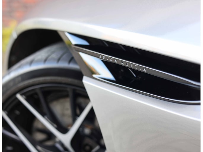 Het exemplaar wat in onze showroom staat te shinen is uitgevoerd in Aluminite Silver metallic. Tevens is de DB12 voorzien van het hoogglans zwarte upper&lower body package, zodat deze Aston over een zeer krachtig uiterlijk beschikt.