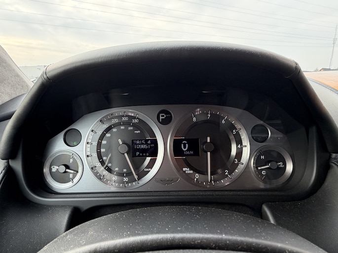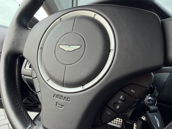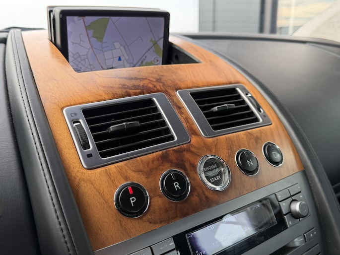 Het rijden in een Aston is een beleving op zich.. je stapt in de wereld van leer en notenhout ( walnoot in dit specifieke geval )>