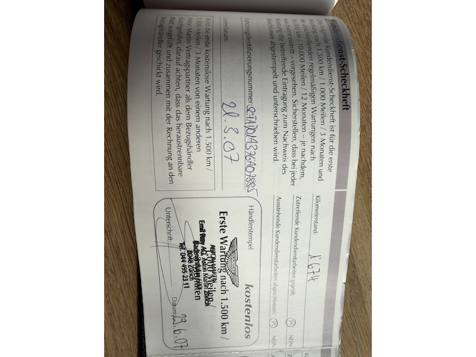 Het onderhoud van deze DB9 is enkel door de dealer uitgevoerd en nauwgezet gedocumenteerd in het originele onderhoudsboekje.