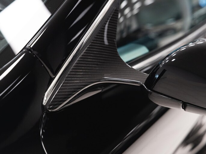 The DBS Coupé is a statement of refined aggression. Its sleek, aerodynamic lines are emphasized by the Storm Black paintwork, exuding confidence and exclusivity. The 2+0 seating arrangement highlights its sporty intent, while the luxurious interior ensures every journey is as comfortable as it is thrilling.