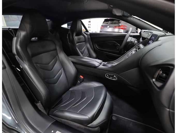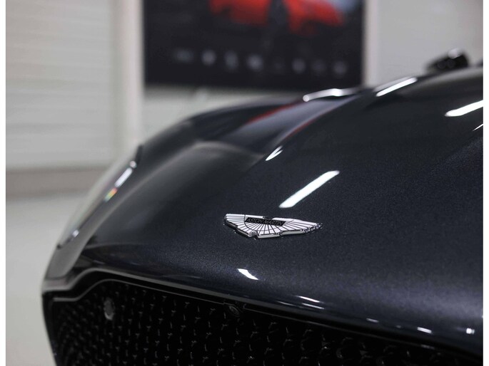 Het exterieur is uitgevoerd in Xenon Grey. Dit metallic lakwerk is voorzien van een sparkle die de Aston Martin een weergaloze uitstraling geeft! Hier komt bij dat de bi-color wielen met rode remklauwen erg fris onder deze auto staan. Dit alles contrasteert prachtig met alle carbon details, waardoor hier een onweerstaanbare Grand Tourer staat!