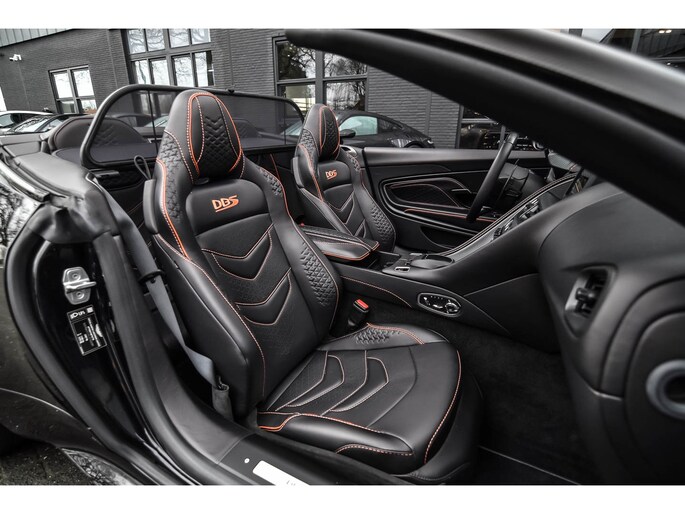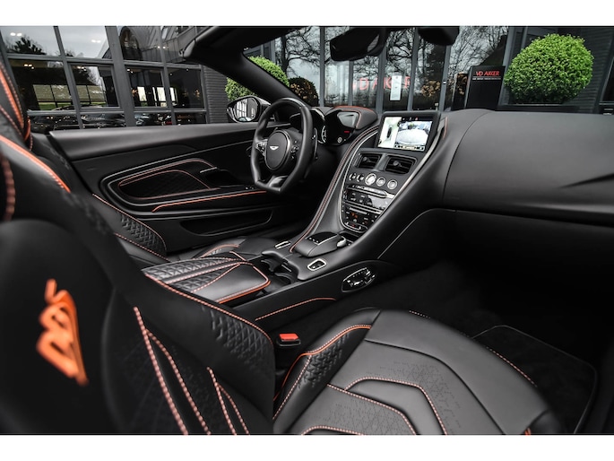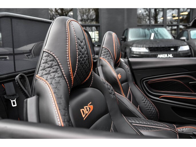 Een uitgebreide beschrijving vindt u op www.akker.nl. De nieuwprijs bedraagt €460.376,- Deze schitterende Aston Martin DBS Superleggera Volante staat in consignatie van een cliënt. Carbon exterieurpakket, Oranje remklauwen, DBS-aanduiding in de stoelen, Carbon / Leder sportstuurwiel, Elektronisch geregelde demping, Contrasterende stiksels, 21 Inch 5-dubbelspaaks (gloss black), Windscherm, Smoked achterlichten, Q Carbon Exterior Badge Pack, Achterzijde stoelen in Carbon, Touchpad, Wifi-voorbereiding, Elektrisch verschuifbare middenarmsteun, Lederen A-stijlen en zonnekleppen.