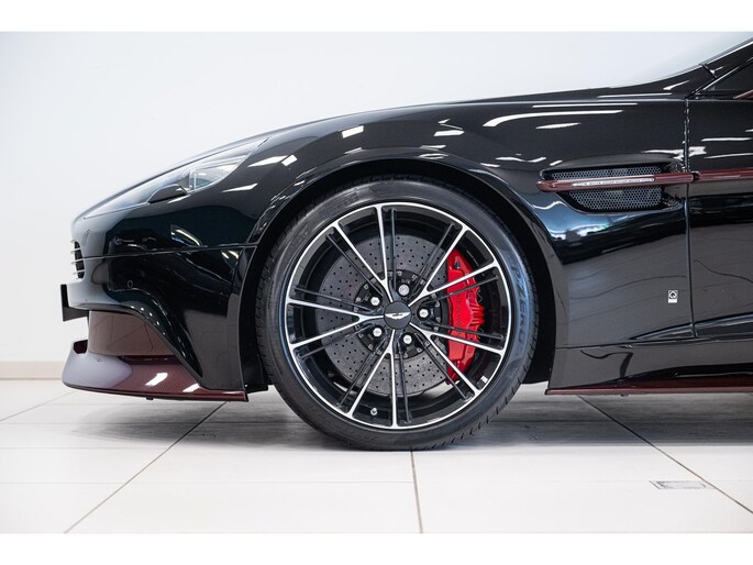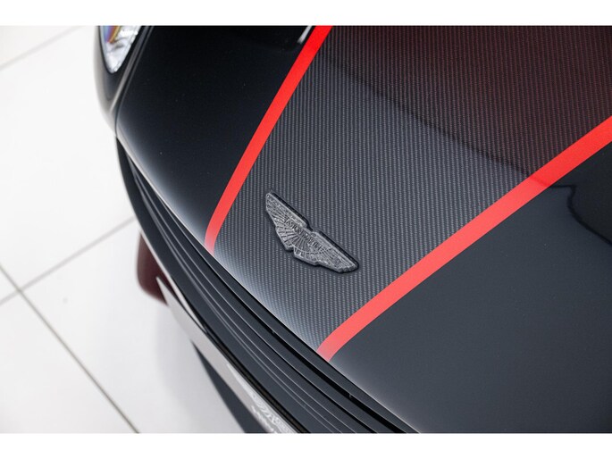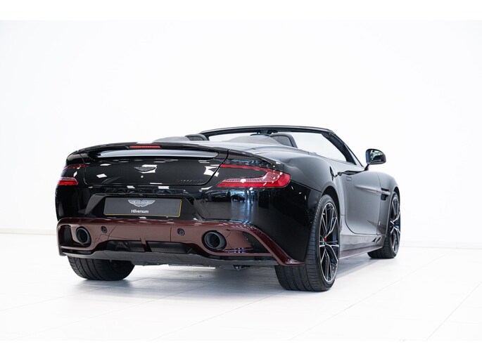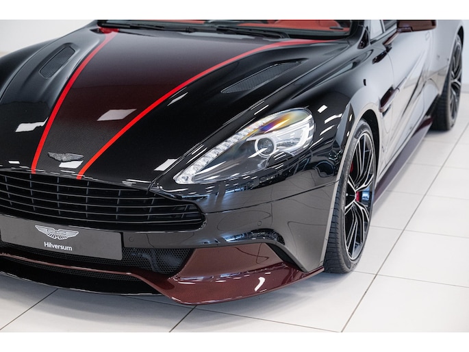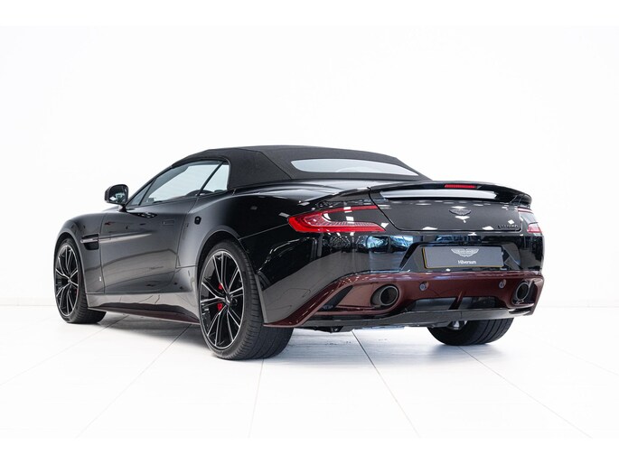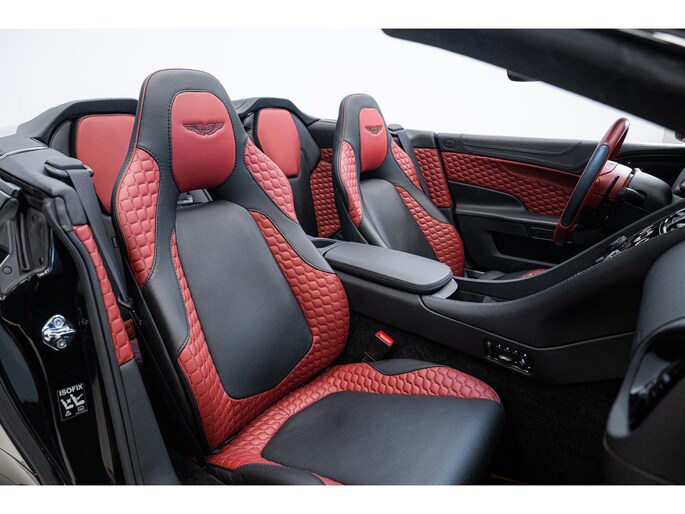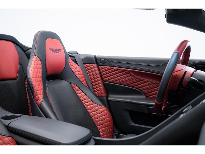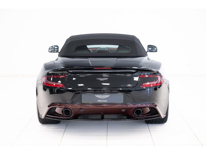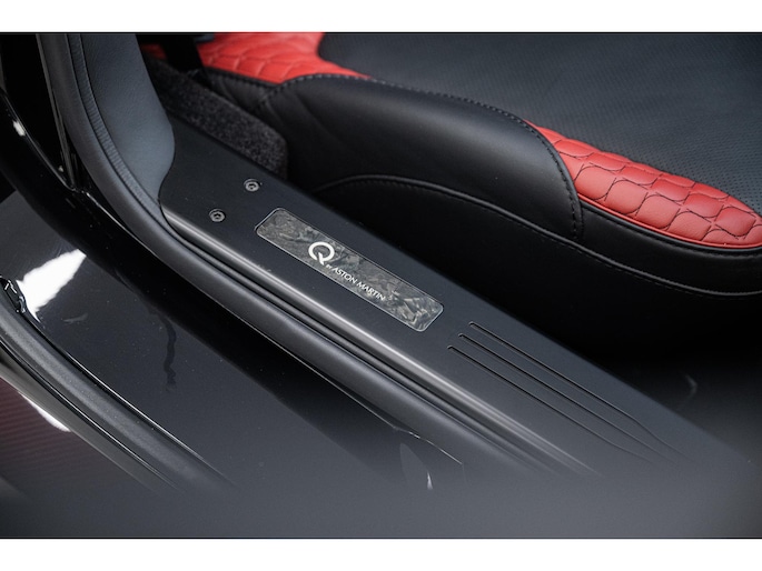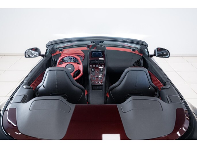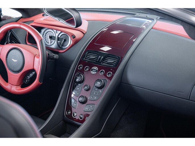 Het Q by Aston Martin programma voegt diverse carbon fibre componenten toe, waaronder de motorkap, splitters, side strakes en diffuser – allen rood getint carbon fibre. Ook het dashboard, de schakelflippers en portierinzetten zijn uitgevoerd in rood carbon. De badges zijn van machined carbon fibre en zelfs het tonneau cover is volledig op maat gespoten. Dit alles maakt deze Vanquish Volante tot een waar collector’s item.