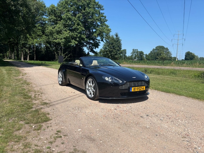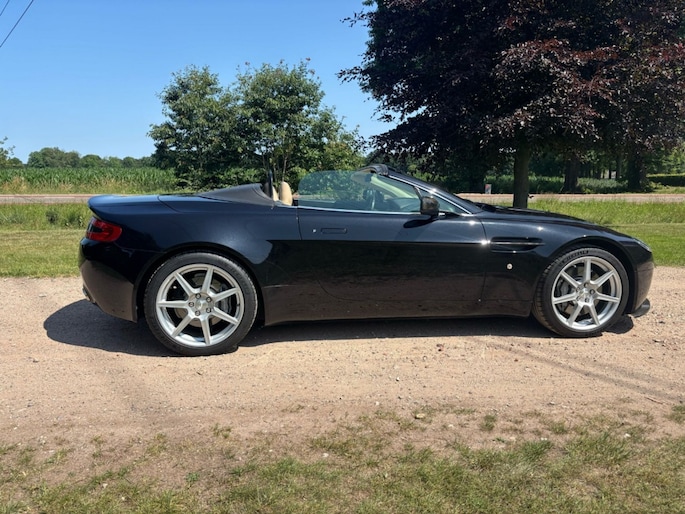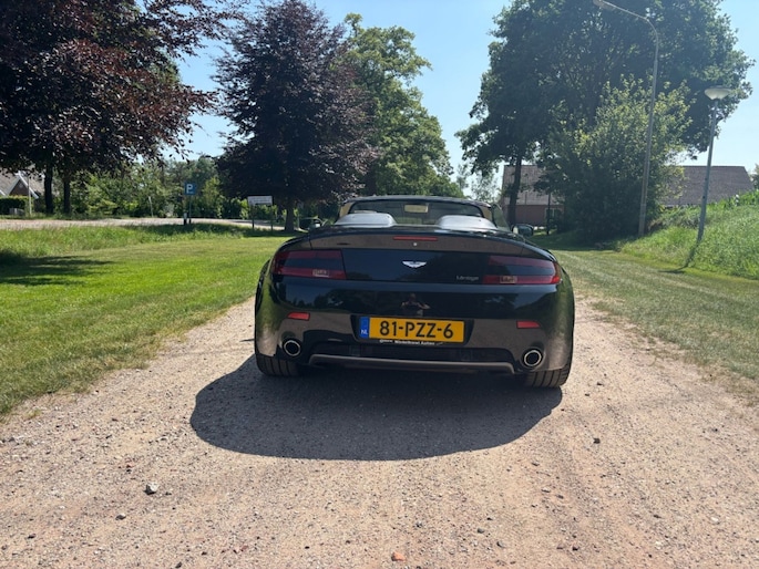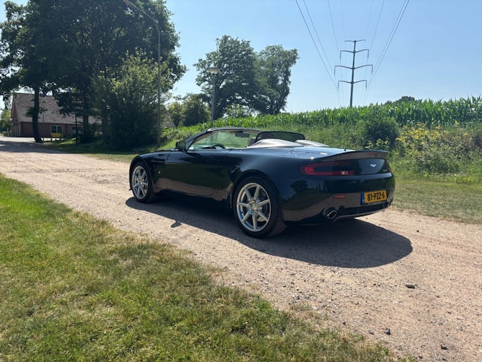 Prachtige zwarte Aston Martin Vantage Roadster te koop! Deze cabriolet uit 2007 is voorzien van een krachtige 8-cilinder motor en automatische transmissie. Met 75.474 kilometer op de teller verkeert hij in uitstekende staat en is hij klaar voor vele zorgeloze kilometers. Het elektrisch bedienbare dak zorgt ervoor dat u optimaal kunt genieten van zon en frisse lucht. Het interieur is afgewerkt met lederen bekleding en elektrisch verstelbare voorstoelen, wat garant staat voor luxe en comfort. Het zwarte exterieur geeft deze Vantage een stijlvolle en sportieve uitstraling – een echte eyecatcher op de weg. Dankzij de indrukwekkende prestaties en het karaktervolle motorgeluid biedt deze auto een unieke rijervaring, of u nu kiest voor ontspannen toertochten of sportief rijden. De auto is perfect onderhouden en beschikt over een complete onderhoudshistorie. Bent u op zoek naar een exclusieve, sportieve cabriolet met tijdloze klasse? Dan is deze Aston Martin Vantage Roadster de ideale keuze. Neem contact met ons op voor meer informatie of plan direct een proefrit.