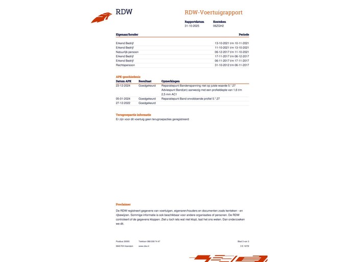 | Wegenbelasting/3mnd | € 145 - € 158 |
