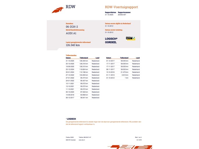 Kilometerstand gecontroleerd
