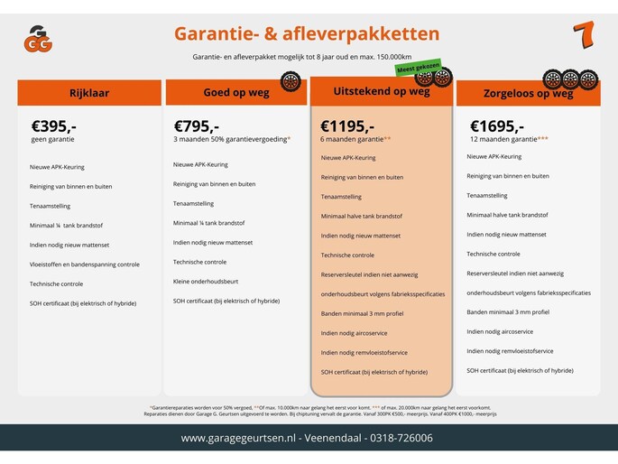 Dit afleverpakket bevat (in plaats van afleverpakket "Basis"): 6 maanden garantie (6 maanden garantie); Nieuwe APK