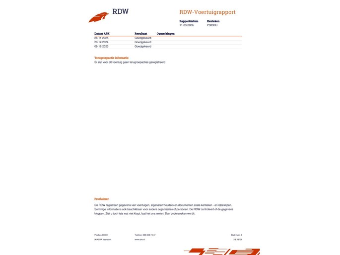 | Wegenbelasting/3mnd | € 119 - € 129 |