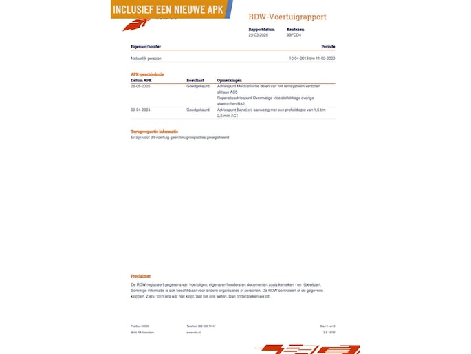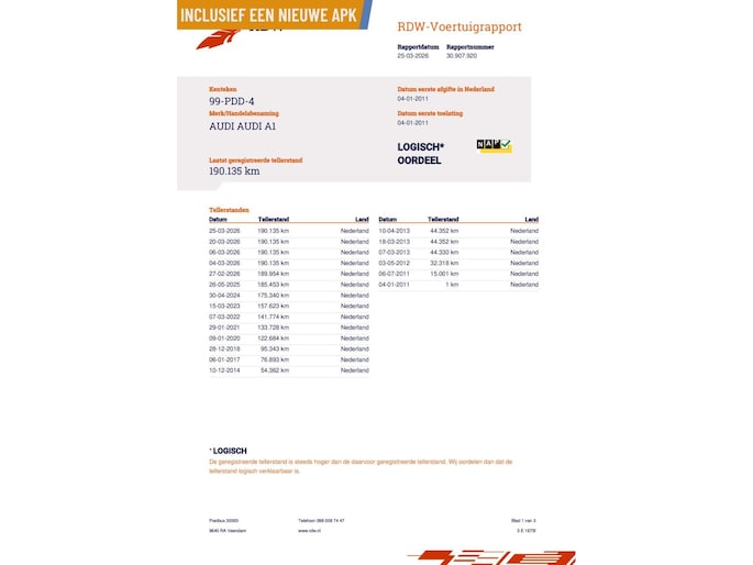 Kilometerstand gecontroleerd