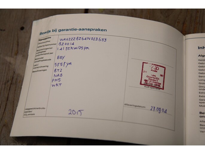 Onderhoudsboekjes: Aanwezig