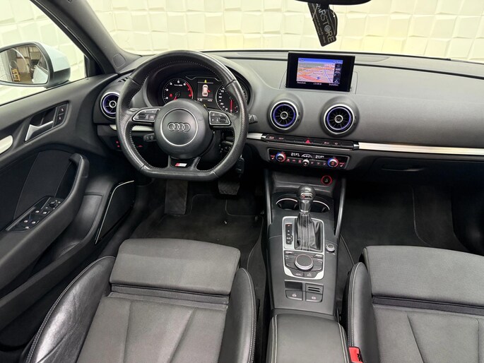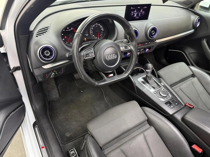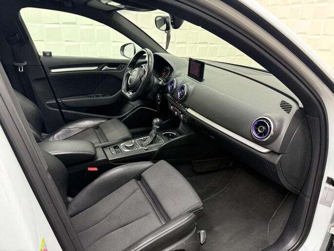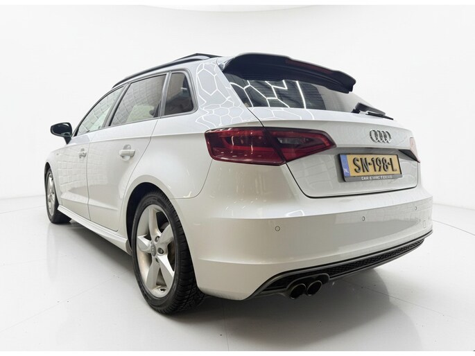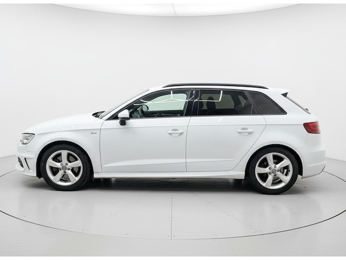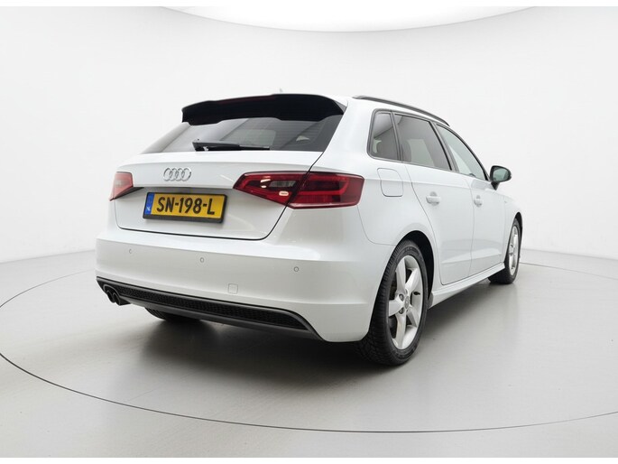 De Audi A3 Sportback vertegenwoordigt het beste van degelijk Duits design. S-Line styling benadrukt de sportieve functionaliteit van het ontwerp. De uitstekende prestaties van deze auto komen van de viercilinder motor en de automatische transmissie. Het stijlvolle lederen interieur geeft deze Audi A3 Sportback net dat beetje extra. Op koude en donkere dagen zijn de verwarmbare voorstoelen een uitkomst. De sportstoelen zorgen voor een strak uiterlijk én een uitstekende zitsteun. Het daglicht valt in overvloed via het elektrisch bediende panoramadak op het fraaie interieur. De gasontladingslampen van de xenonverlichting zorgen voor een krachtige en heldere lichtbundel. Bij de uitrusting van deze Audi horen onder meer 18 inch lichtmetalen velgen, sportonderstel, halflederen bekleding, warmtewerend glas, dakspoiler en elektrisch inklapbare buitenspiegels.