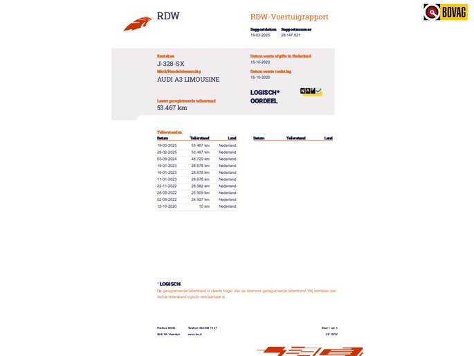Kilometerstand gecontroleerd