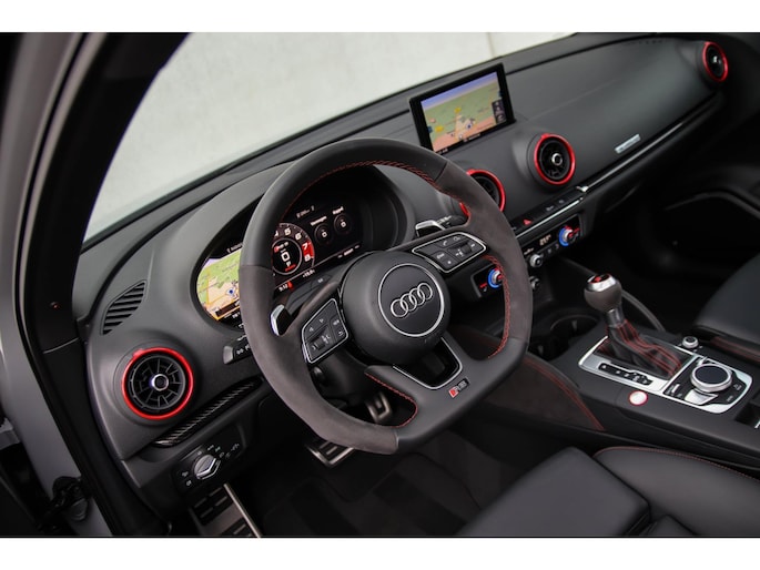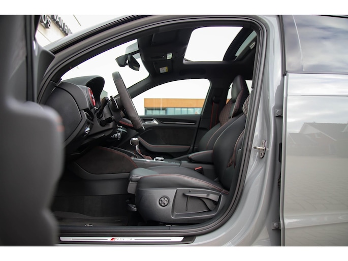 Enkele fabrieksopties: Audi Exclusive Nardo Grey|Supersport RS Valcona zwart lederen Kuipstoelen met rode Diamond Cross stitching|Audi Virtual Cockpit|Panoramisch glazen schuif-/kanteldak elektrisch|RS Performance Sportuitlaat|Keramische remmen / Ceramic Brakes|S-TRONIC AUTOMAAT|QUATTRO|19inch gegoten Audi Sport RS3 velgen|Rear View / Achteruitrijcamera|Parkeersensoren voor- & achterzijde|B&O / Bang & Olufsen Surround Soundsysteem|Audi Drive Select - Rijprofielinstellingen|LED dagrijverlichting|LED Matrix koplampverlichting|3D Dynamische knipperlichten voor- & achterzijde|Navigatiesysteem groot MMI Plus|Bluetooth|Voice Control|Stoelverwarming|Zwarte hemelbekleding|Lederen/Alcantara 3-spaaks afgevlakt RS3 sportstuurwiel|F1 schakelflippers|Automatisch dimmende binnenspiegel & buitenspiegels|Elektrische ramen voor- & achterzijde|Spiegelpakket - Elektrisch inklapbare buitenspiegels|Keyless Entry & Keyless GO|Grootlichtassistent|Cruise Control|Audi Pre Sense|Attention Assist|Ambianceverlichting|Climate Control Dual-zone|Coming-/Leaving Home|Black Pack / Zwart optiekpakket|Hoogglans zwarte grille incl. Quattro inleg|Hoogglans zwarte raamomlijsting|Zwarte dakrailing|Zwarte Audi emblemen|Zwarte cerakote einddempers|Privacy Glass|Carbon interieurlijsten|Alcantara interieurafwerking incl. rode stiksels|RVS instaplijsten incl. LED verlichting|RVS sportpedalen|Alarmsysteem fabrieksaf.