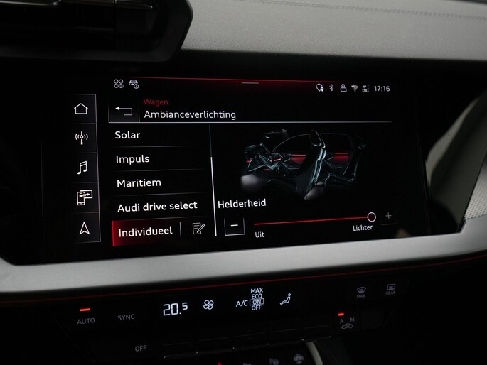 Spraaksturing betekent dat u verschillende functies met uw stem kunt bedienen. Bij deze auto is uw smartphone een geavanceerde afstandsbediening. Remote services brengen u overal in contact met uw auto. Met het full map navigatiesysteem kiest u de snelste route naar uw eindbestemming. Het comfort wordt verhoogd door de aanwezige automatische airconditioning. Zoals van een eigentijdse auto verwacht mag worden, is deze Audi A3 Limousine voorzien van een draadloze oplaadmogelijkheid voor telefoons. De Audi is standaard voorzien van: sportstuur met schakelpaddels, DAB ontvangst, parkeersensoren achter, regensensor, cruise control en centrale deurvergrendeling met afstandsbediening.