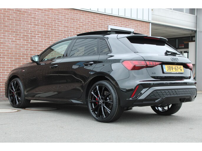 Een nieuwe Audi A3 met originele 272PK Hybride-motor met automaat en o.a. Panoramadak, Matrix led koplampen, elektrisch bedienbare stoel, adaptieve cruise control en een elektrische achterklep.