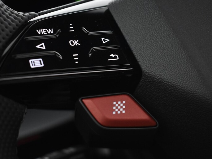 - Driespaaks lederen sportcontourstuur, afgevlakt aan de boven en onderzijde, multifunctioneel plus, met stuurpaddels en bediensatelieten (2ZC)