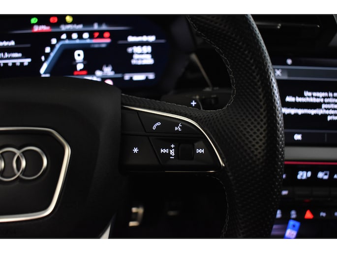 Deze Audi S3 Limousine is voorzien van vele opties en sportieve extra's o.a.: Origineel navigatiesysteem/multimedia/bluetooth, Apple Carplay, draadloze telefoon oplader, boordcomputer, alcantara / lederen S - line sportstoelen met stoel verwarming, automatische airco, parkeersensoren voor en achter met camera, led verlichting, buitenspiegels elektrisch inklapbaar verstelbaar en verwarm baar, Audi drive select, chromen sierlijst, sfeerverlichting, 18 inch lichtmetalen S -line velgen, panoramadak, Head-up display, adaptive cruise-control, matrix led koplampen, en nog veel meer!